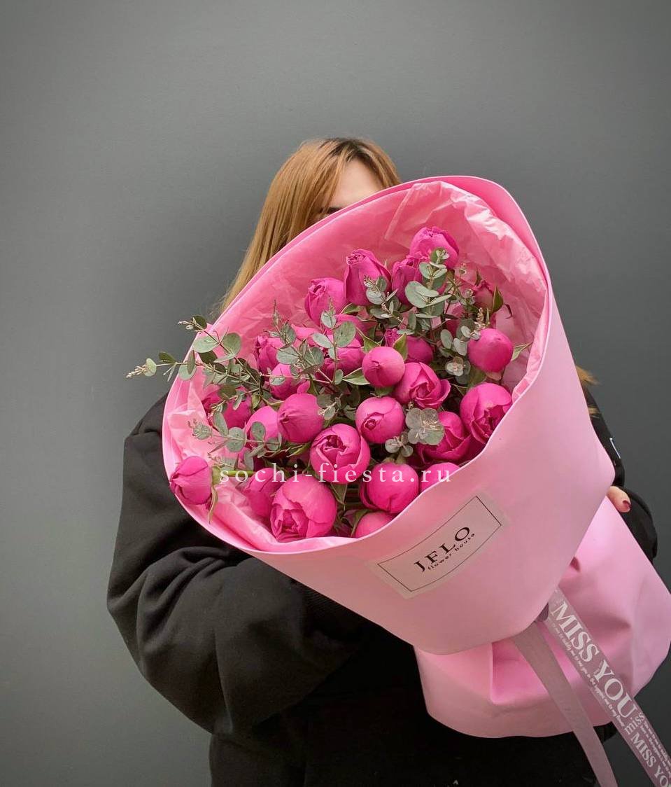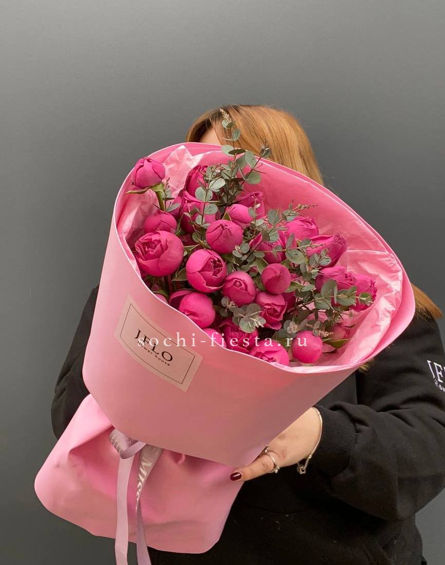 15 роз сорта джумилия, лента, дизайнерская упаковка.