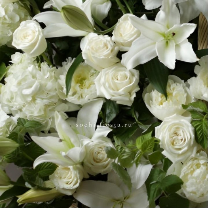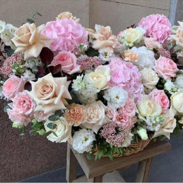 - Корзина-гигант — плетёная корзина из сезонных цветов для торжественных вручений и открытий.