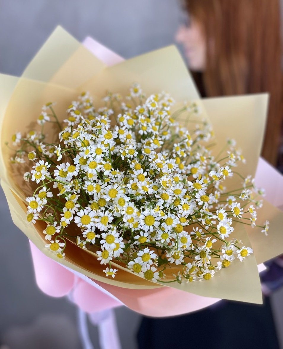 ромашки (танацетум камилла) - 11 веток, лента, упаковка.