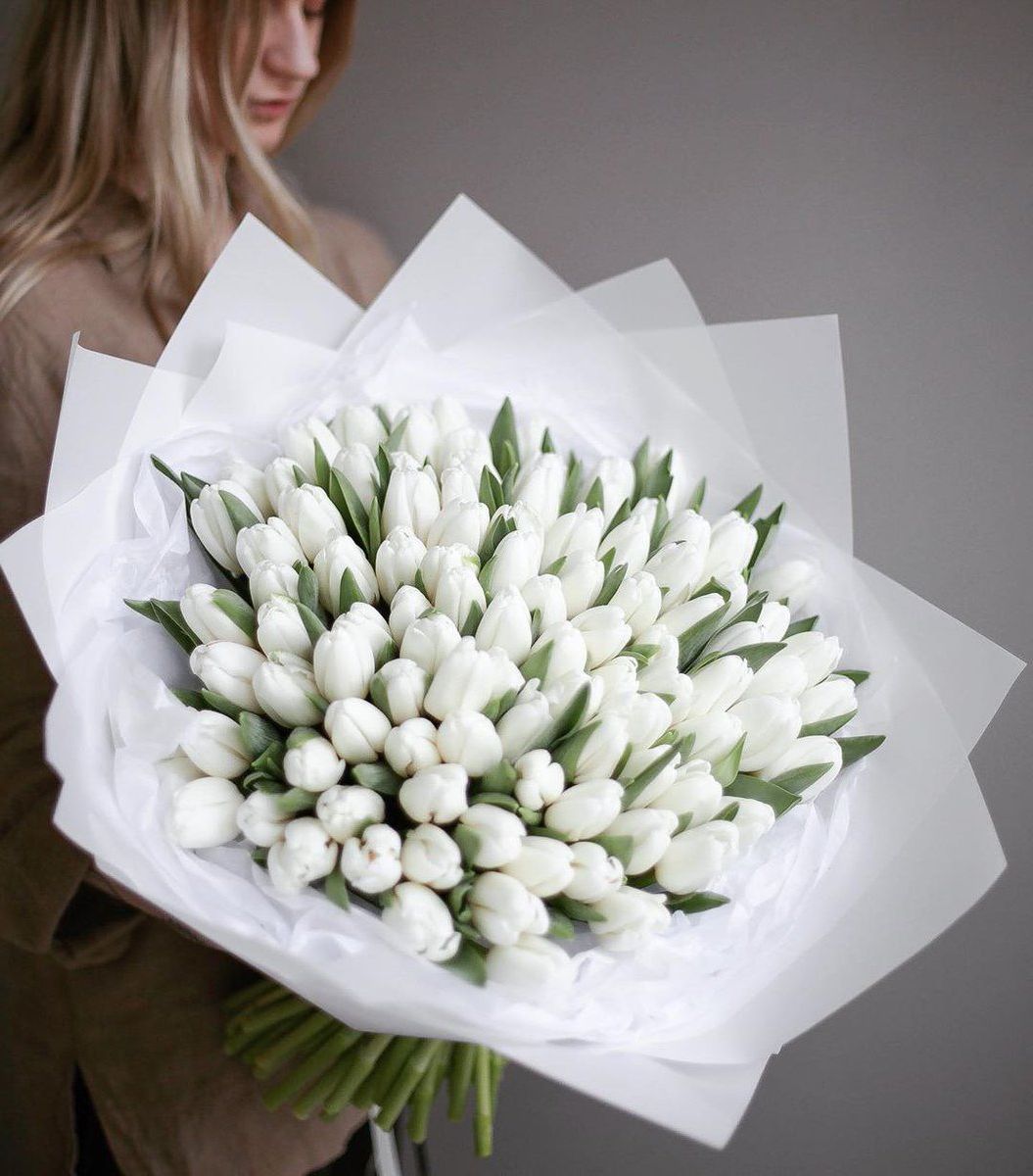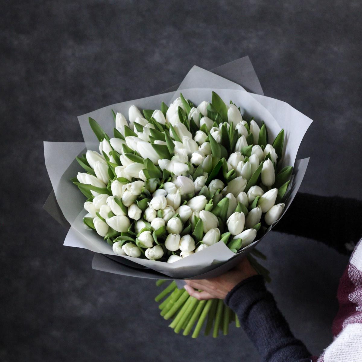 Одиннадцать тюльпанов в дизайнерском оформлении подойдут для весеннего жеста внимания. Цвет бутонов можно выбрать по вашему желанию.