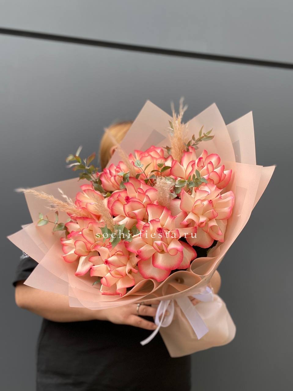 Мы работаем только со свежими цветами — букеты радуют от 7 до 14 дней и дольше при правильном уходе.