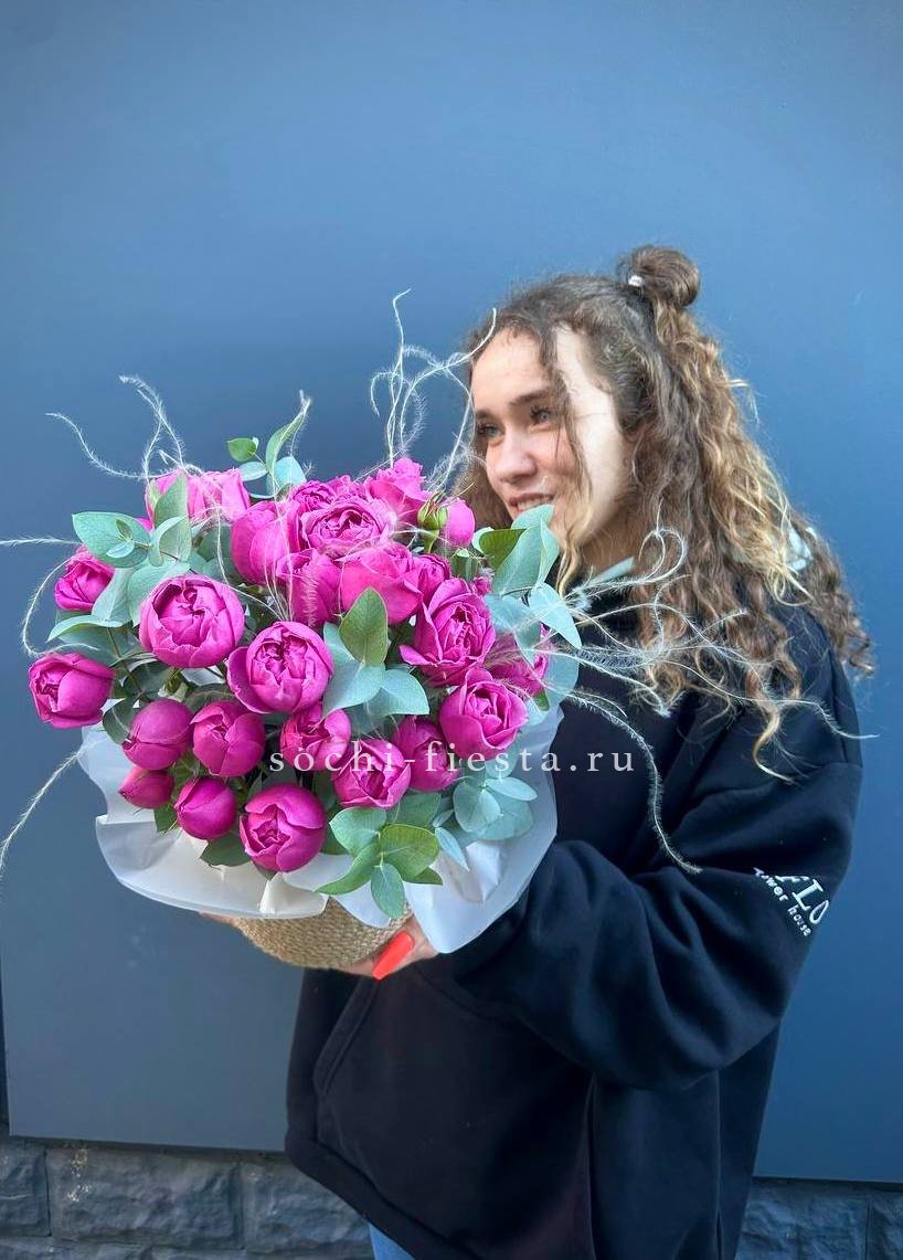 Для заказа товара "Пионовидные розы в джутовом кашпо " с доставкой в Владивостоке нажмите в корзину