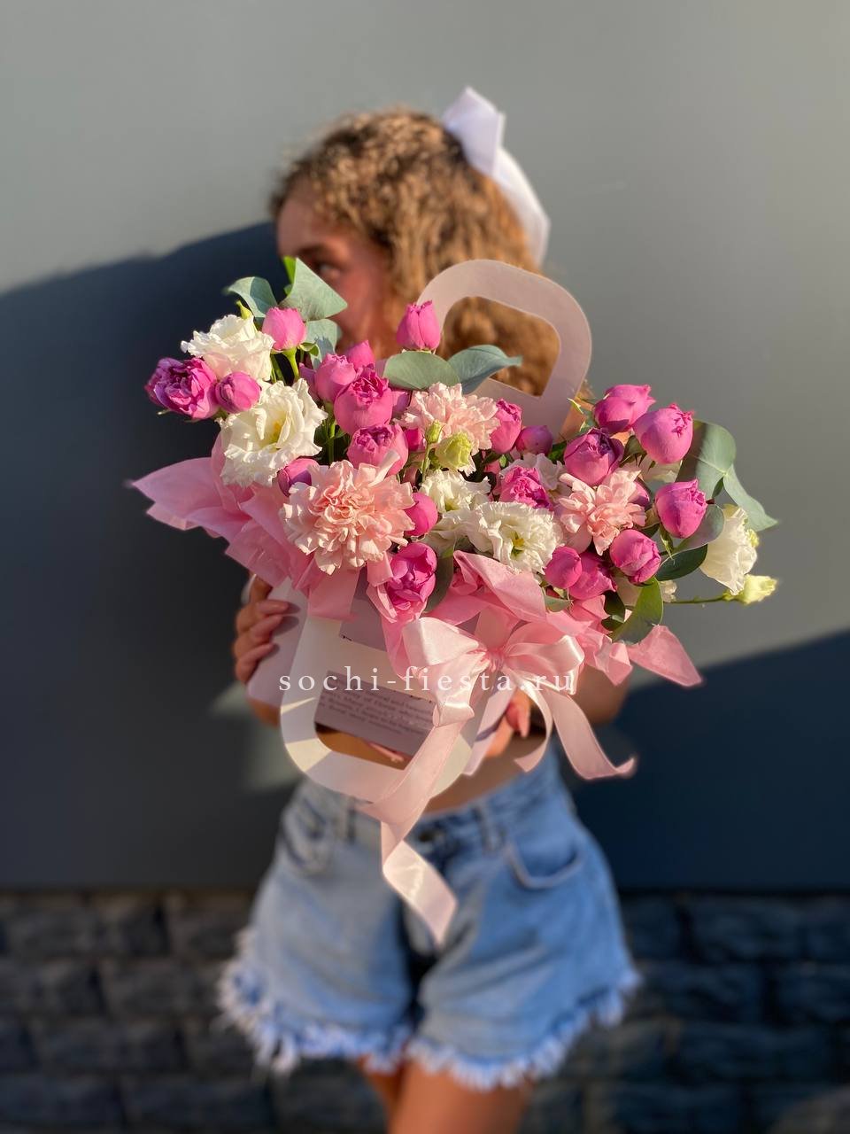 Для заказа товара "Сумочка с кустовой розой и диантусами" с доставкой в Владивостоке нажмите в корзину