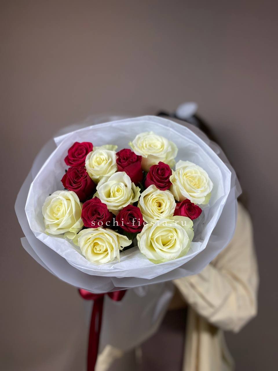 Букет из красных белых 15 роз