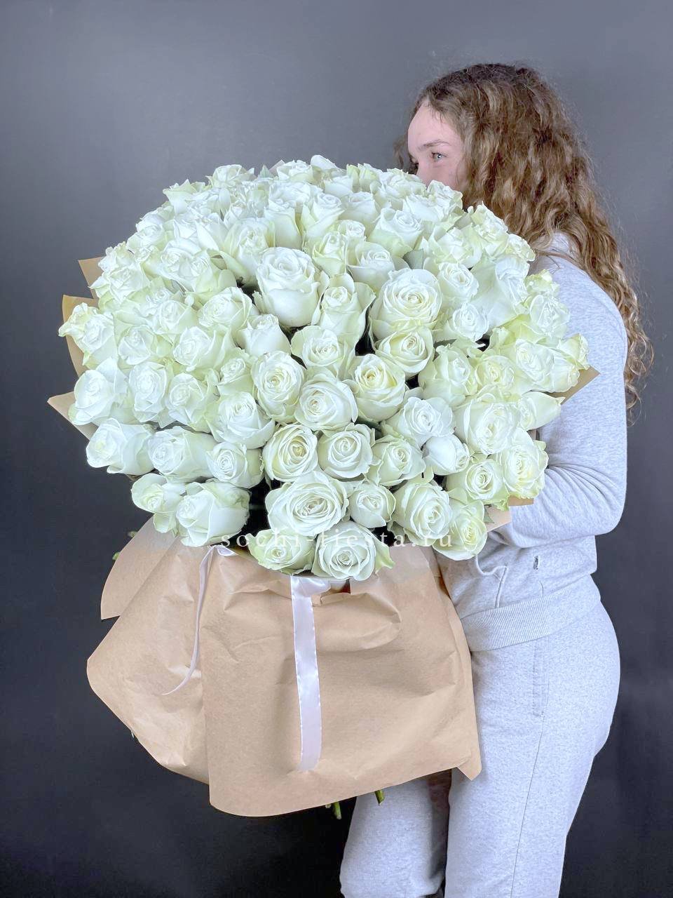 101 белая и розовая роза, лента.