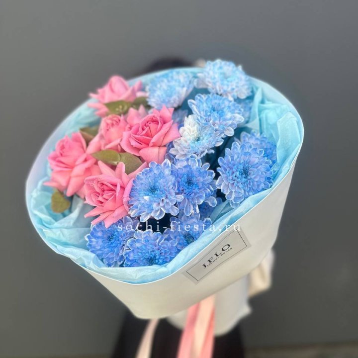 сборный букет из роз и хризантем для подарка в небольшом городе