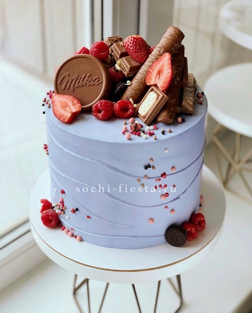 Миниатюрный торт с яркой надписью и домашним теплом в каждом слое. Крем держит форму, а бисквит остается влажным благодаря небольшому объему и свежести выпечки.